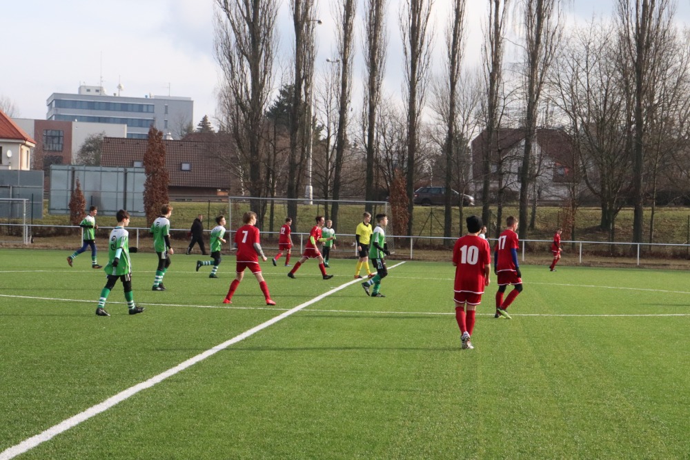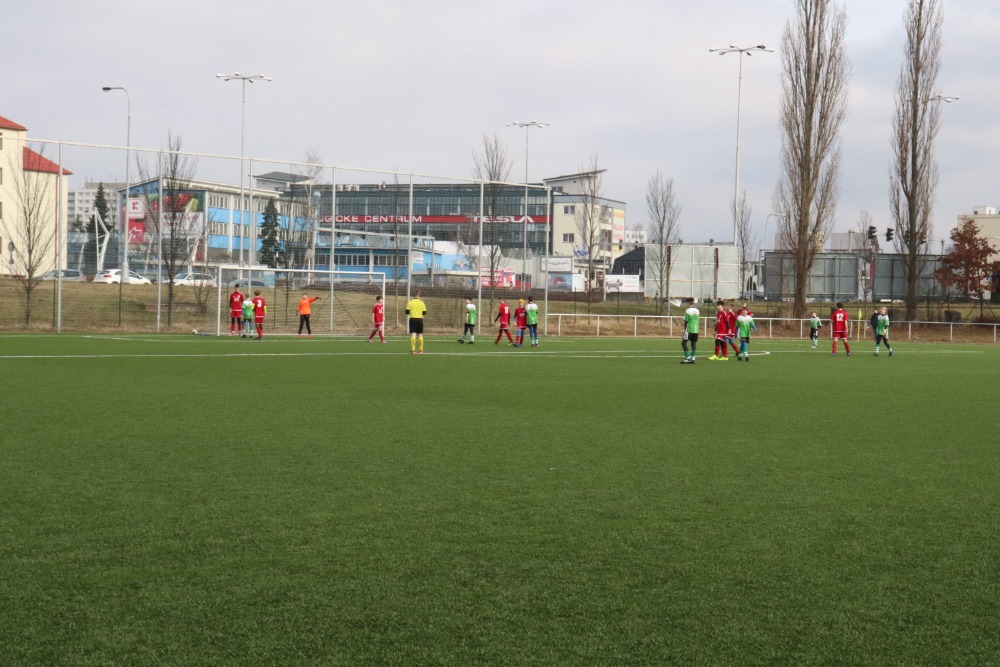 Zápas se většinu prvního poločasu odehrával na naší polovině, přesto se soupeři nepodařilo ani jednou překonat našeho spolehlivě chytajícího brankáře. Dokonce jsme vsítili v závěru poločasu dva slepené góly. Druhý poločas bohužel patřil soupeři, který měl od 60. minuty znatelně více fyzických sil.